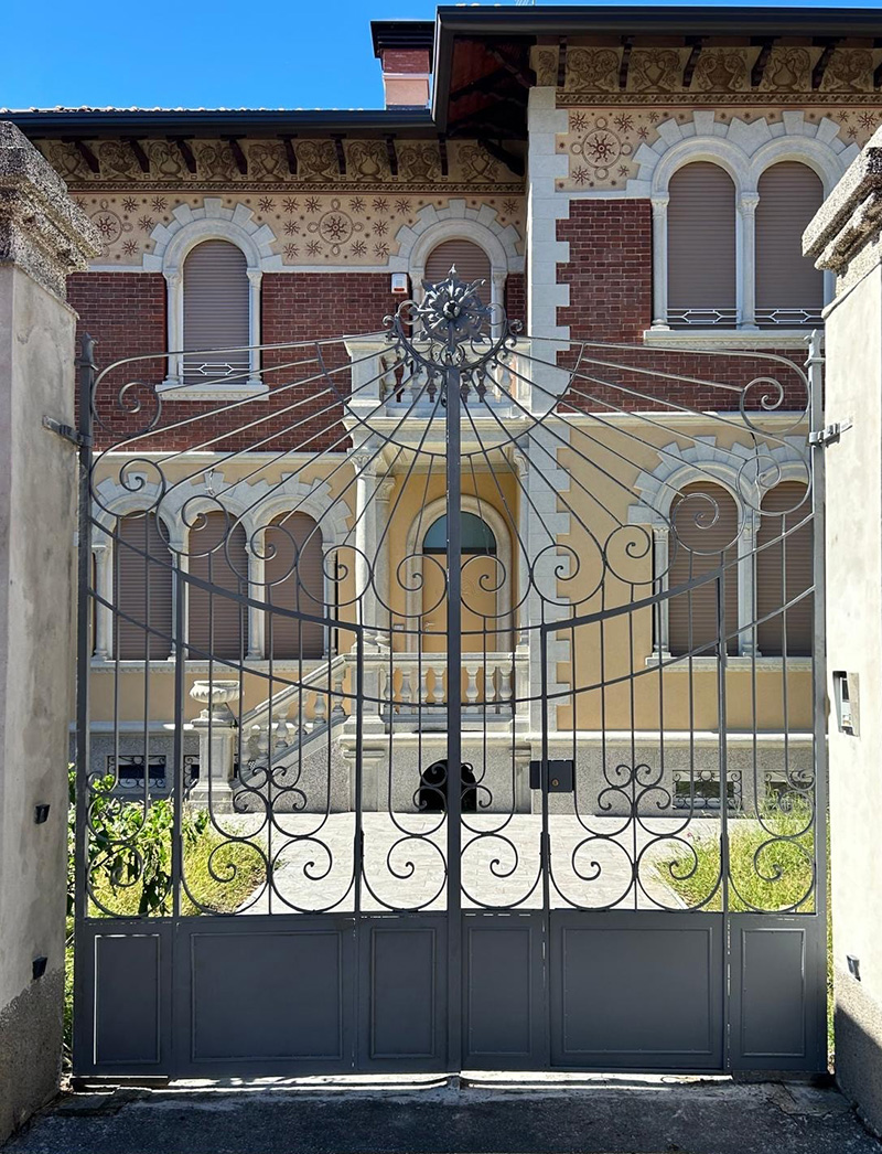 Cancello in ferro battuto a protezione di una villa d'epoca ristrutturata